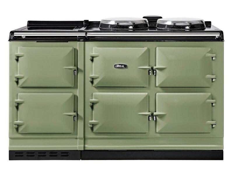 Last but not least, the AGA ER7 150 Electric With Induction Hob in Olivine with Stainless Steel Trim: